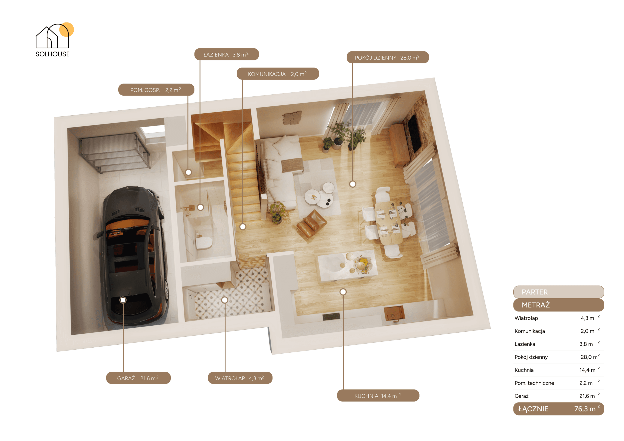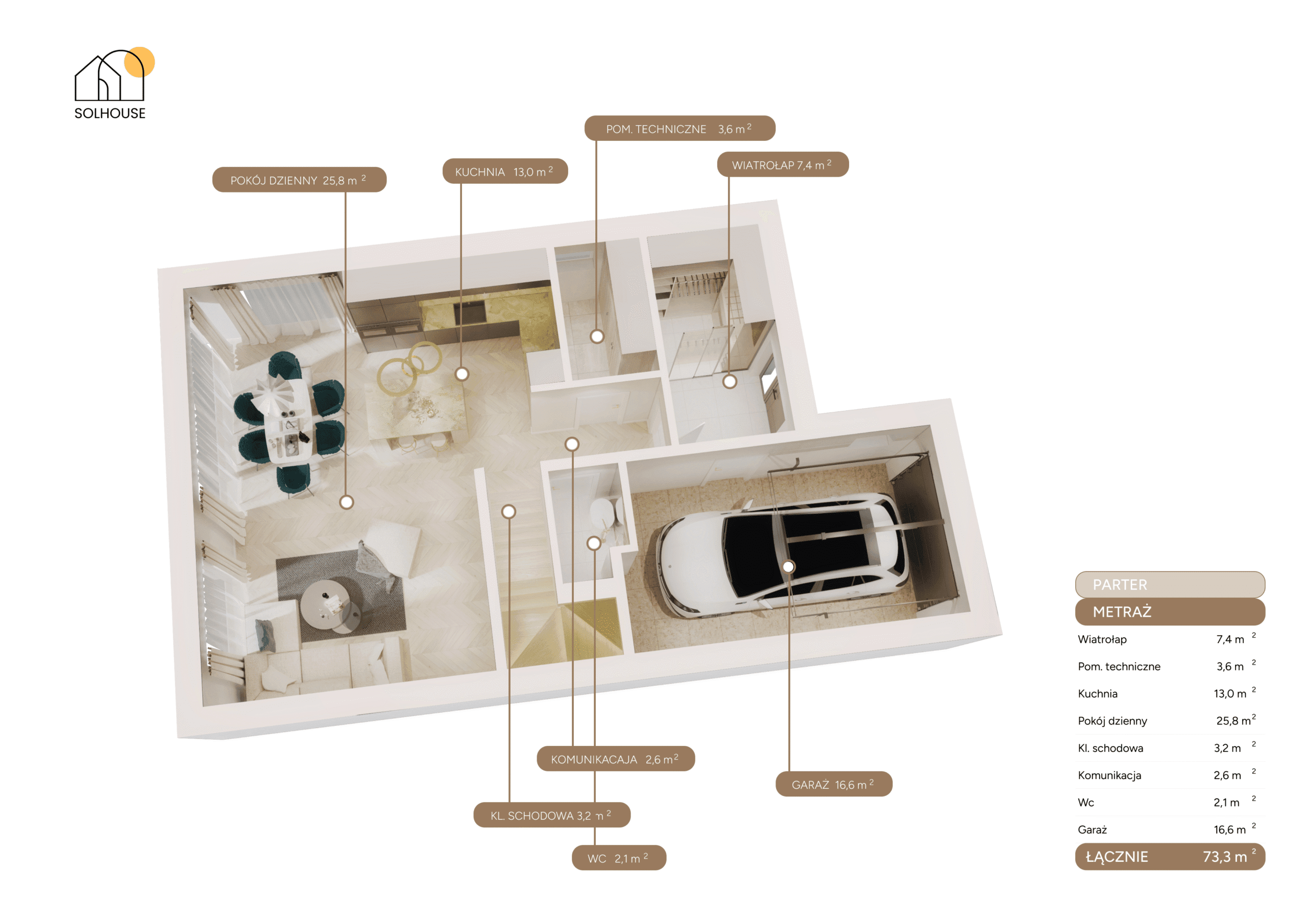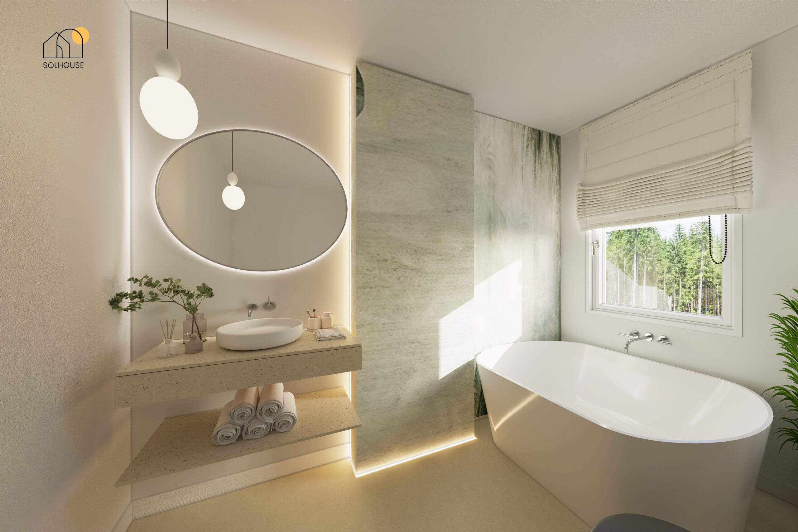 – 2 łazienki, miejsce na garderobę, pralnię i wszystko, co potrzebne do wygodnego życia