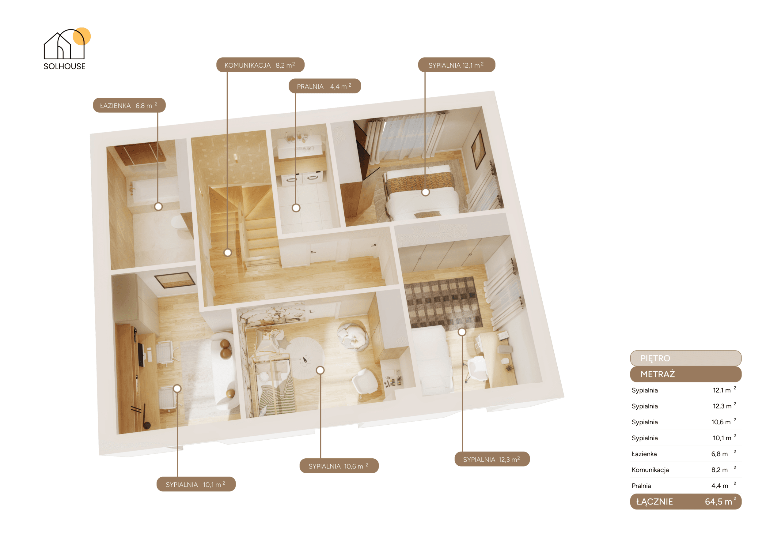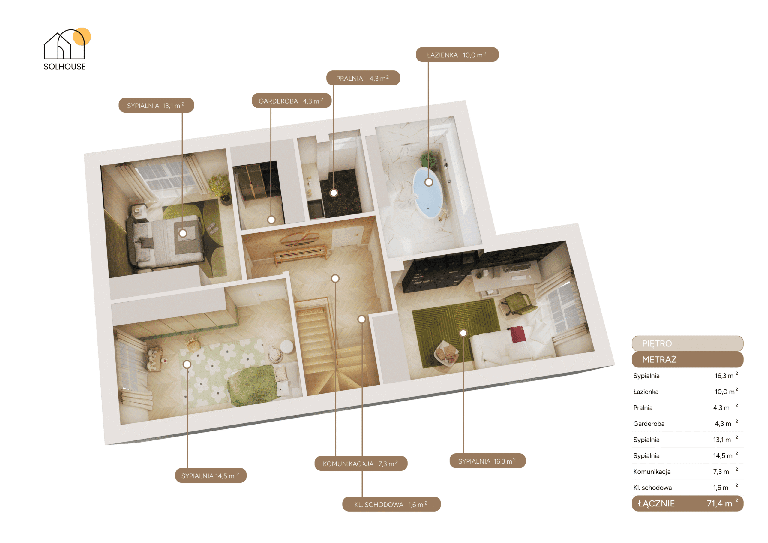 – 4 sypialnie– dla Ciebie i dzieci